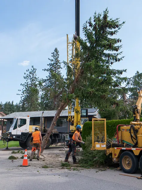 As the Okanagan’s only crane-assisted tree removal specialists, we combine ISA-certified arborists with a full complement of hydraulic lift cranes to manage technically complex and extreme danger projects, including hazardous tree removals. Unlike others, we own and operate our own cranes — we never rely on third-party providers. In every situation, safety remains our top priority.